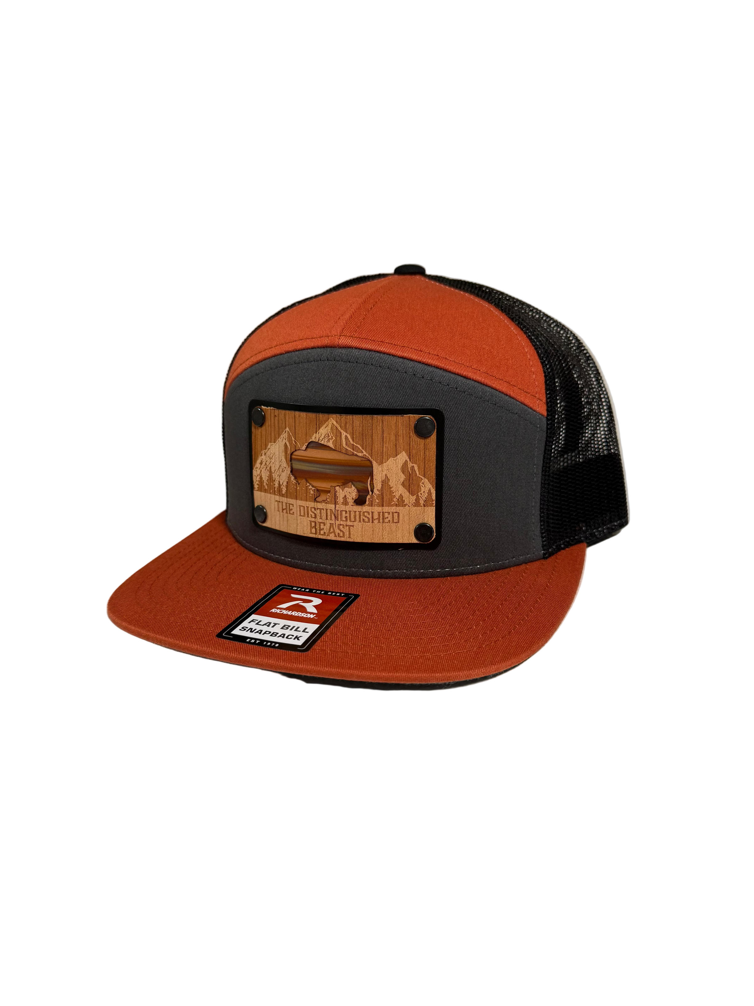 The fire treated copper is a perfect match for the burnt orange and charcoal. The 168 is a contemporary-styled seven-panel trucker with a flat bill, popular with today's fashion-forward headwear fans. The Hi Pro shape and seamless front panel provide the ideal canvas for all types of decoration.